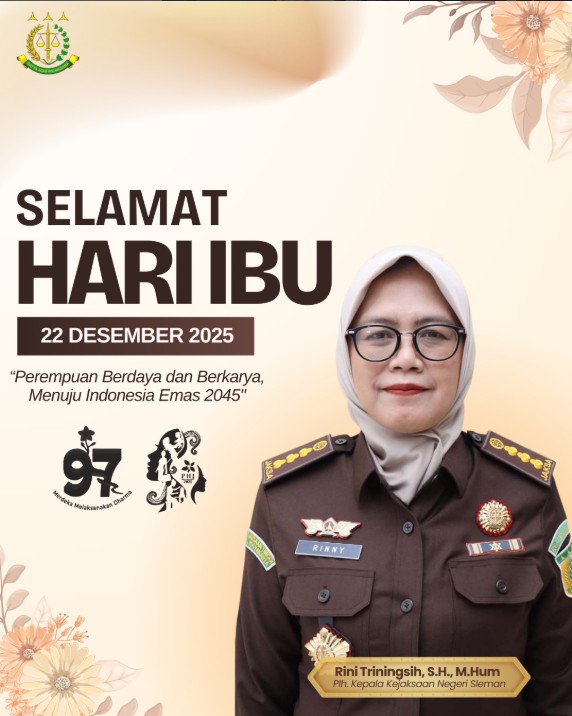 Plh. Kepala Kejaksaan Negeri Sleman Rini Triningsih, S.H., M.Hum., beserta seluruh jajaran mengucapkan Selamat Hari Ibu Tahun 2025."Perempuan Berdaya dan Berkarya, Menuju Indonesia Emas 2045"#HariIbu #Motherday #KejariSlemanMilikKita ...