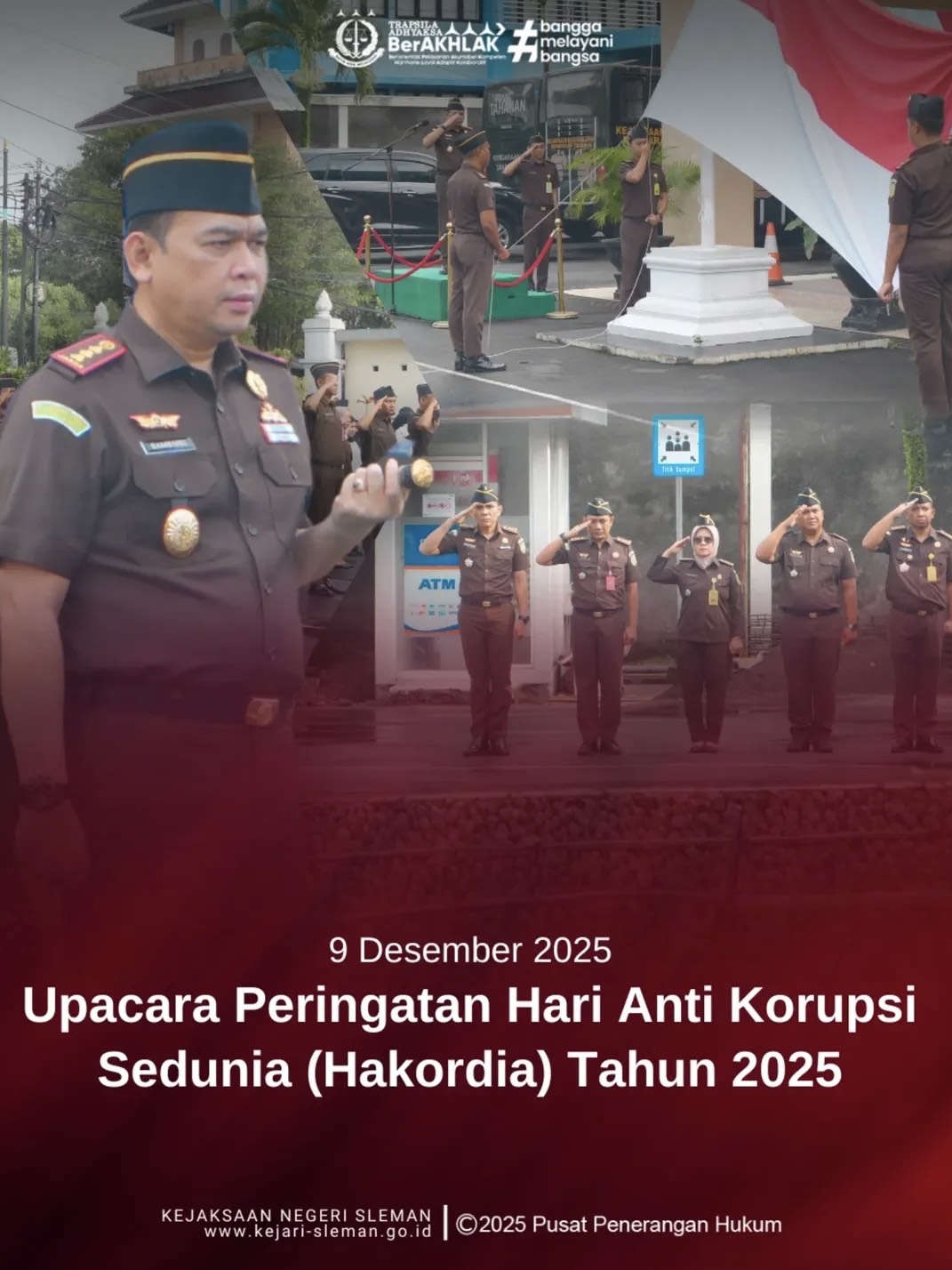 Kepala Kejaksaan Negeri Sleman beserta seluruh jajaran mengucapkan "Selamat Hari Anti Korpsi Sedunia Tahun 2025" "Berantas Korupsi Untuk Kemakmuran Rakyat" #Hakordia #HariAntiKorupsi #KejariSlemanMilikKita ...