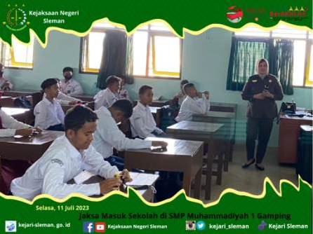 Sleman- Selasa, 11 Juli 2023 Pukul 12.30 WIB s,d 13.30 WIB, telah dilaksanakan kegiatan Penyuluhan Hukum Program Jaksa Masuk Sekolah dengan tema “Pendidikan Karakter Anti Korupsi” yang diselenggarakan oleh SMP Muhammadiyah 1 Gamping, ...