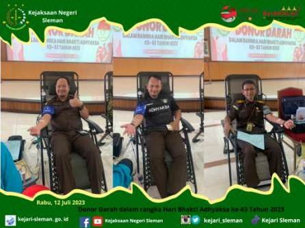 Pegawai Kejaksaan Negeri Sleman dan Ibu - Ibu Ikatan Adhyaksa Dharmakarini Daerah Sleman mengikuti kegiatan Donor Darah dalam Rangka Hari Bhakti Adhyaksa ke 63 Tahun 2023 dan Hari Ulang Tahun XXIII Ikatan Adhyaksa ...
