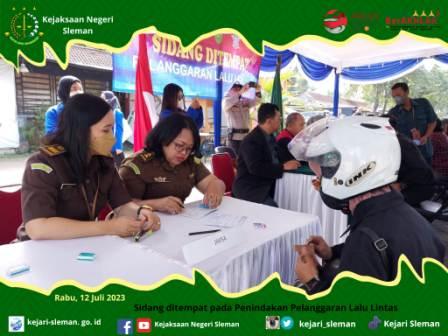 Kejaksaan Negeri Sleman melalui Seksi Tindak Pidana Umum, dalam hal ini Jaksa Fungsional Meilinda Margaretha H.N., S.H. dengan didampingi Staf Bagian Tilang turut dalam pelaksanaan sidang ditempat pada Penindakan Pelanggaran Lalu Lintas bertempat ...
