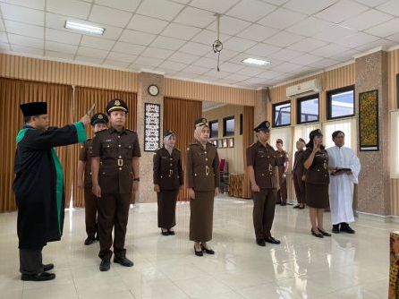 Kepala Kejaksaan Negeri Sleman, Widagdo, S.H. memimpin upacara pengambilan sumpah/ janji Pegawai Negeri Sipil bagi para CPNS ( Calon Pegawai Negeri Sipil ) menjadi PNS ( Pegawai Negeri Sipil ) Kejaksaan RI Tahun ...