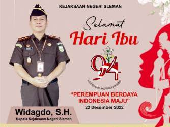 Kejaksaan Negeri Sleman menggelar Upacara Peringatan Hari Ibu ke-94 Tahun 2022 dengan tema “PEREMPUAN BERDAYA INDONESIA MAJU”. Kepala Kejaksaan Negeri Sleman Widagdo, S.H. bertindak sebagai Inpektur Upacara, dengan peserta upacara seluruh pegawai di ...