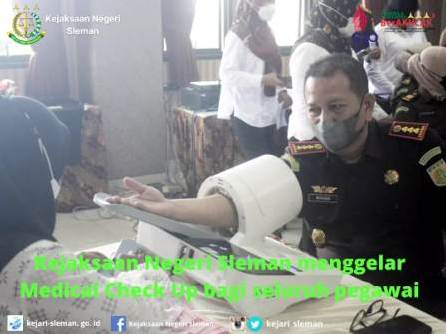 Kepala Kejaksaan Negeri Sleman, Widagdo, S.H. bersama seluruh pegawai, security, office boy, pengelola kantin melaksanakan rekam medis / medical check up di Aula Kantor Kejaksaan Negeri Sleman. Dalam pelaksanaanya, Kejaksaan Negeri Sleman bekerjasama ...