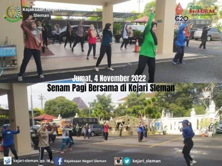 Pegawai Kejaksaan Negeri Sleman mengikuti Senam Bersama bertempat di halaman kantor Kejaksaan Negeri Sleman. Kegiatan senam bersama ini merupakan kegiatan rutin setiap jum'at pagi sebagai upaya untuk menjaga kesehatan dan kebugaran jasmani para ...
