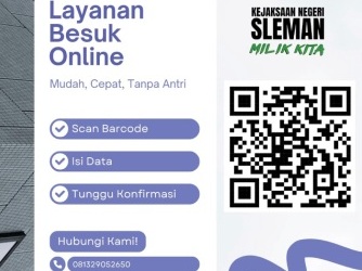 Layanan Besuk Kini Lebih Mudah!Kejaksaan Negeri Sleman menghadirkan layanan pengurusan izin besuk secara online. Ajukan izin besuk tanpa harus datang langsung, cukup melalui perangkat Anda. Cepat Praktis Tanpa Antri Scan barcode diatas untuk mengajukan izin besuk sekarang! ...