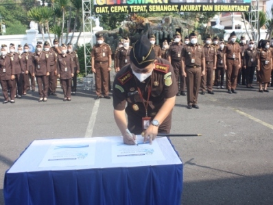 Kepala Kejaksaan Negeri Sleman Widagdo, S.H. memimpin Apel Pencanangan Zona Integritas yang diikuti oleh seluruh pegawai, karyawan honorer, office boy, dan security di lingkungan Kejaksaan Negeri Sleman. Dilanjutkan dengan Penandatanganan Maklumat Pelayanan, Pakta ...