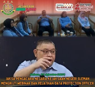 Selasa, 27 Agustus 2024 Kepala Seksi Perdata dan Tata Usaha Negara Panji Wiratno S.H., M.H., dan Jaksa Pengacara Negara pada Kejaksaan Negeri Sleman mengikuti secara Daring Webinar dan Pelatihan Data Protection Officer yang dibuka ...