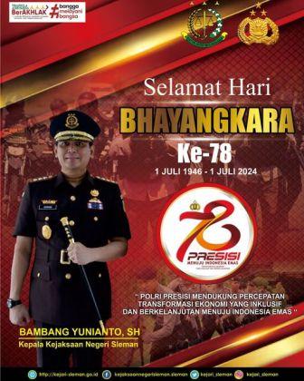 Kepala Kejaksaan Negeri Sleman Beserta Jajaran Mengucapkan Selamat Hari Bhayangkara Ke-78 Tahun 2024“Polri Presisi Mendukung Percepatan Transformasi Ekonomi Yang Inklusif dan Berkelanjutan Menuju Indonesia Emas” ...