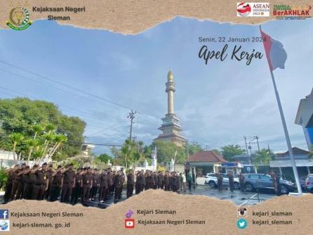 Kepala Seksi Tindak Pidana Umum Kejaksaan Negeri Sleman, Agung Wijayanto, S.E.,S.H., M.H. memimpin Apel Kerja yang berlokasi di halaman kantor Kejaksaan Negeri Sleman, pada hari Senin 22 Januari 2024. Yang di ikuti Para ...