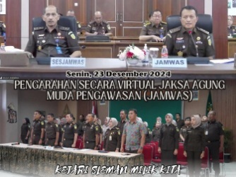 Senin, 23 Desember 2024 Kepala Kejaksaan Negeri Sleman, Bambang Yunianto, S.H., M.H., bersama para Kasi, Kasubag, dan seluruh pegawai Kejaksaan Negeri Sleman, mengikuti kegiatan monitoring dan evaluasi serta pengarahan oleh Jaksa Agung Muda Pengawasan, ...