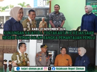 Rabu, 27 November 2024Kepala Kejaksaan Tinggi D.I. Yogyakarta, Ahelya Abustam, S.H., M.H., bersama rombongan, melakukan kunjungan kerja ke Kejaksaan Negeri Sleman. Kunjungan ini disambut hangat oleh Kepala Kejaksaan Negeri Sleman, Bambang Yunianto, S.H., ...
