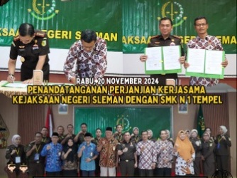 SelengkapnyaPenandatanganan perjanjian kerja sama antara Kejaksaan Negeri Sleman dan SMK N 1 Tempel