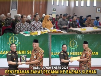 Kamis, 21 November 2024 Kejaksaan Negeri Sleman mengadakan acara penyerahan zakat pegawai kepada Badan Amil Zakat Nasional (BAZNAS) Kabupaten Sleman. Dalam kegiatan ini, terkumpul dana sebesar Rp30.036.000 (tiga puluh juta tiga puluh enam ribu ...