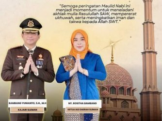 Kepala Kejaksaan Negeri Sleman, Bambang Yunianto, S.H., M.H., bersama Ketua Ikatan Adhyaksa Dharmakarini Daerah Sleman, Rositha Yulianthi, S.E., serta seluruh jajaran, mengucapkan selamat memperingati Maulid Nabi Muhammad SAW, 12 Rabiul Awal 1447 Hijriah. ...