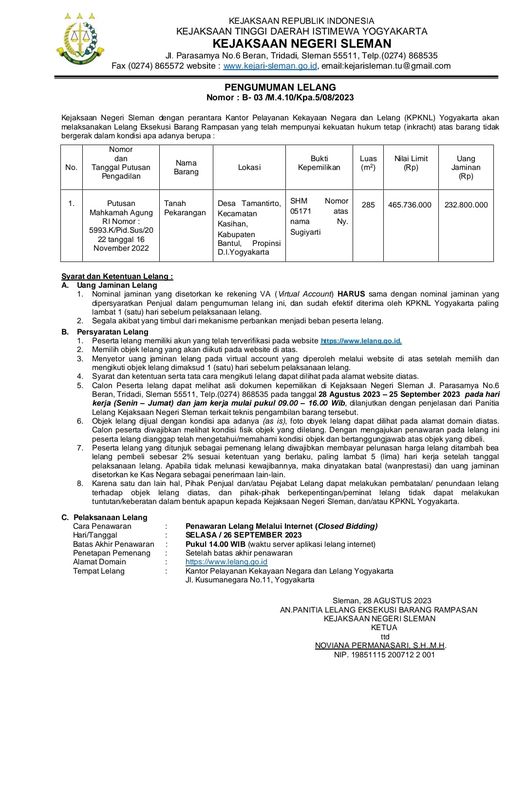 Info Lelang Kejaksaan Negeri Sleman
